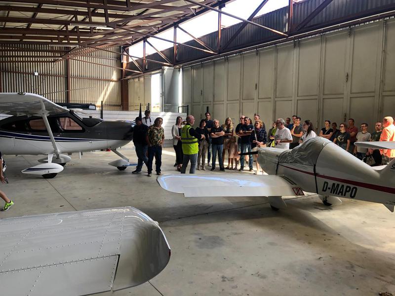 Empfangen wurden die Gäste vom Geschäftsführer, der die Geschichte und Nutzung des Flughafens erläuterte. Anschließend brachte Herr Weiken den Teilnehmern die Technik näher: Sicherheitskonzepte am Boden und in der Luft, Flugzeugkennungen sowie die verschiedenen Treibstoffarten. Ein besonderes Highlight war die Besichtigung eines Ultraleichtflugzeugs, bei der spannende Einblicke in die Technik geboten wurden.