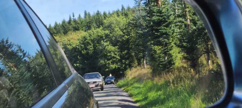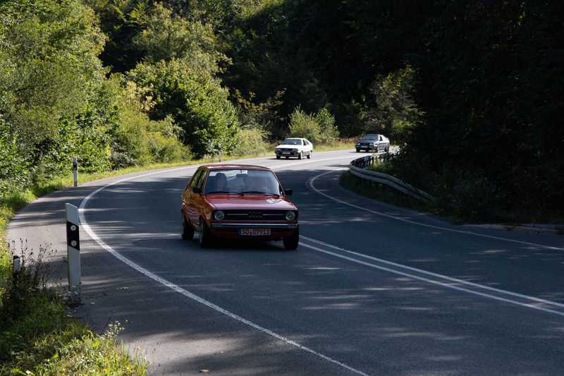 Gegen Nachmittag startete das Teilnehmerfeld zu ihrer Ausfahrt – und diese war wahrlich ein Genuss für Fahrer wie Zuschauer. Die 23 glänzenden Alt-Audis reihten sich wie auf einer Zeitreise aneinander und bahnten sich ihren Weg durch das landschaftlich reizvolle Sauerland, das sich bereits in einem ersten Hauch von Herbstfarben präsentierte.